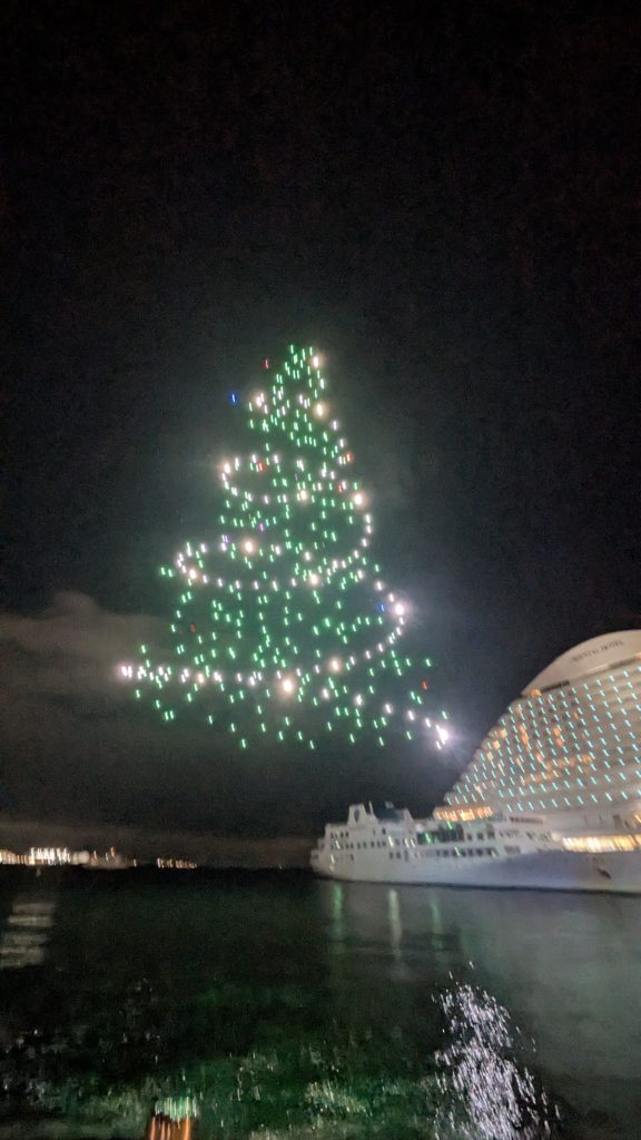 クリスマスツリーです。ドローンなんで立体感あって素敵です。