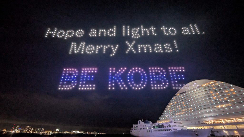 今夜は神戸のドローンショーなのです。いきなりポートタワーから。