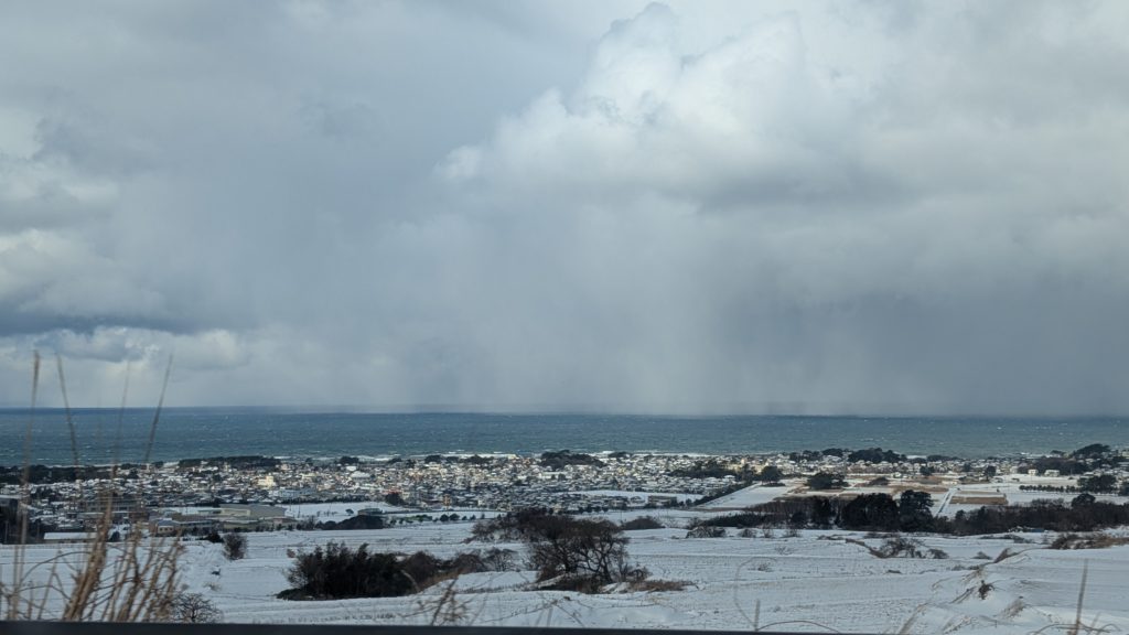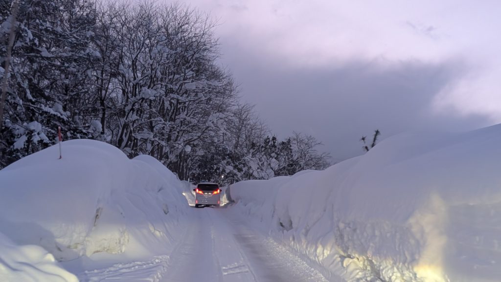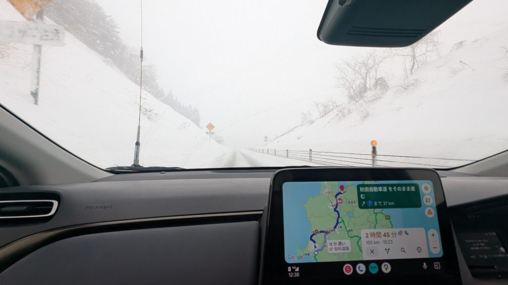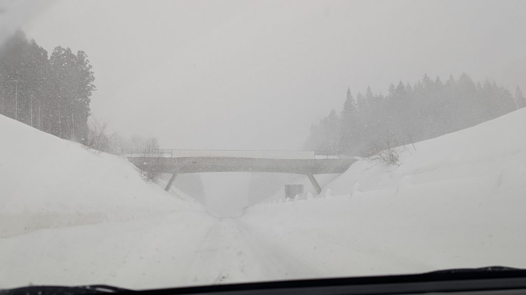 この後、完全にホワイトアウトしました。高速で止まることもできず超怖かった。道路がマジで見えず。