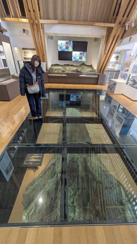 道の駅。ガラスの床下に巨木が!