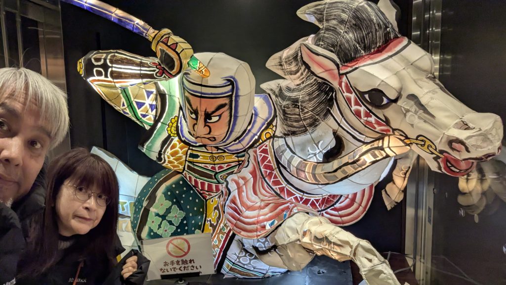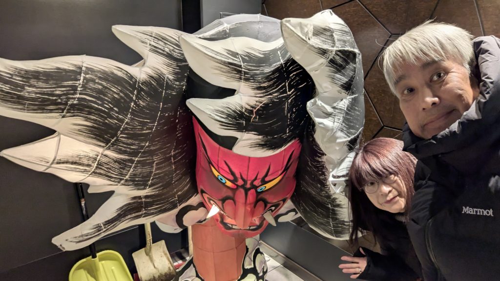 青森のスパホ。入口にはねぶたが!