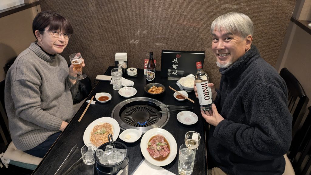 近所の焼肉屋さんで夕食です。