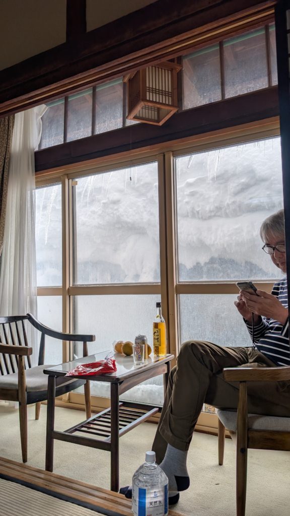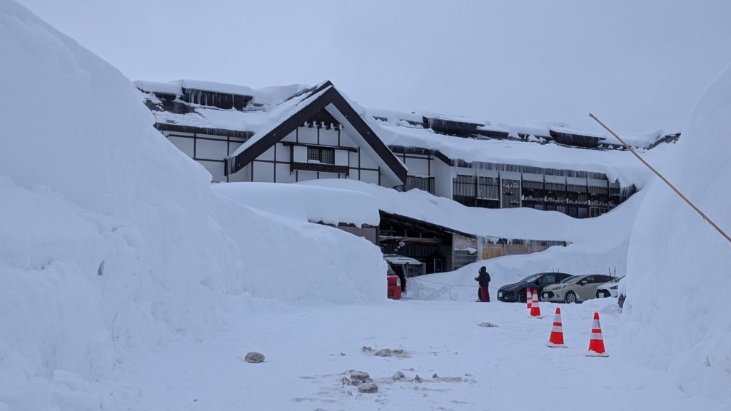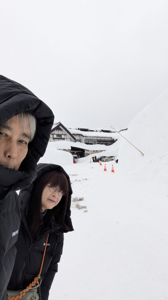 しかしすごい雪。テレビの雪のニュースで必ず出て来ます。来てみたかったのよ。