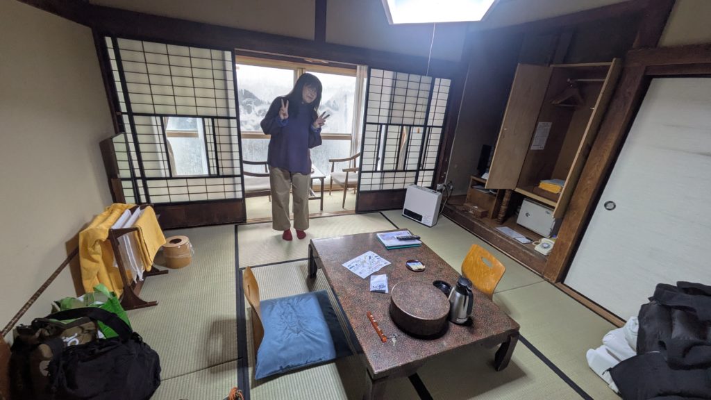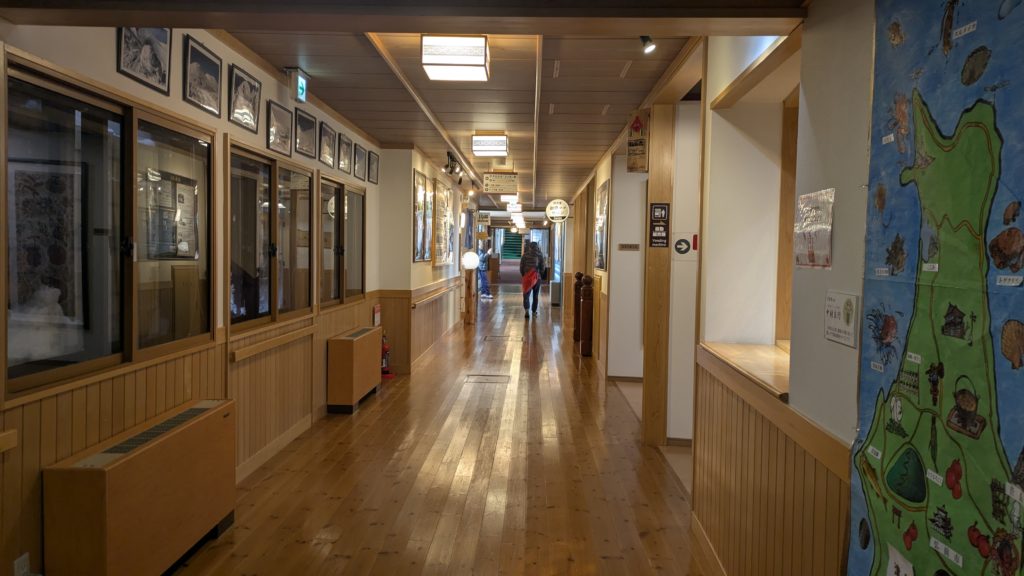 正面は湯治棟。我々は旅館棟なのでまた別の建物です。チェックインは14:30らしいのですが我々のように午前中に着いても受付はしてくれて、タオル類は先にもらえるのでお風呂はいけます。クアハウスのような休憩施設もあるのでビール休憩もできます。←いまここ。