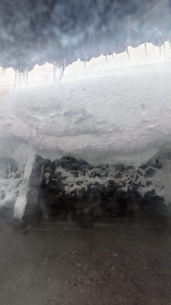 お部屋からは雪壁ビュー😭 これで2階。ま、しゃーない。