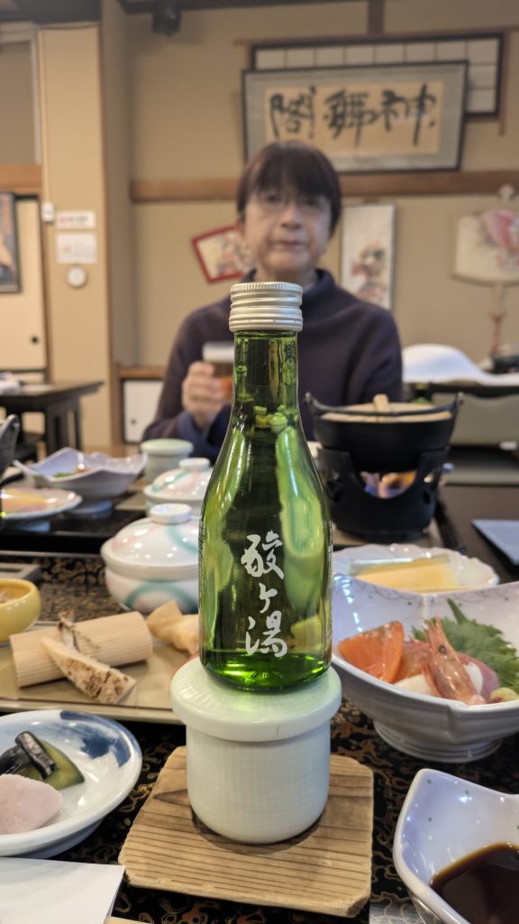 宿の夕食。酸ヶ湯の日本酒でしたー。