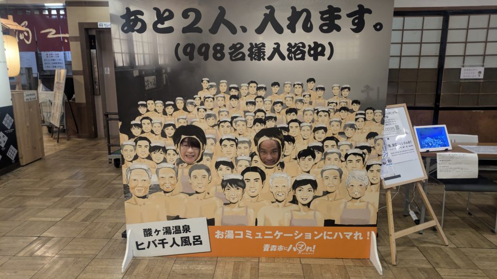 正面が有名な「ヒバ千人風呂」❤。