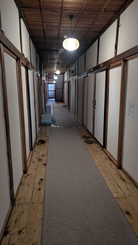 廊下。我々の部屋は真ん中より奥の右手、723号室です。