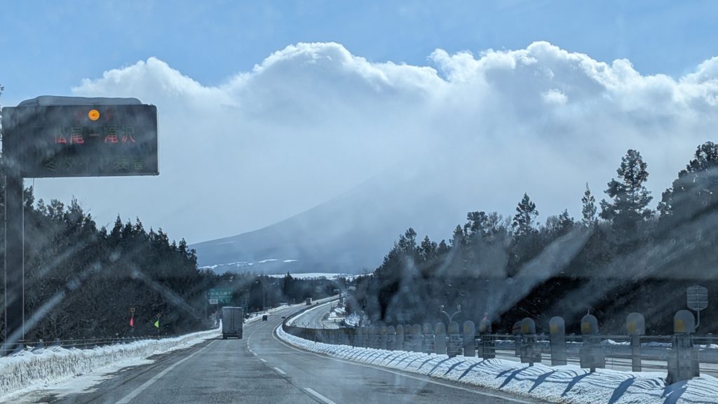 高速で盛岡を目指すことにしました。日本海側は来るときにホワイトアウトして懲りたので日本海側を避けて盛岡寄りのコース選択としました。東北自動車道ですね。