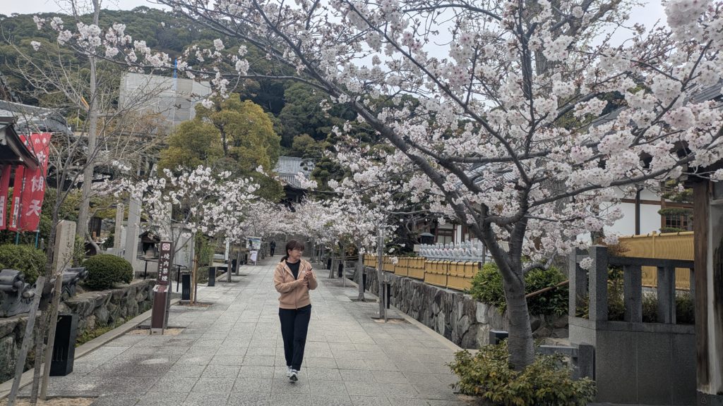 須磨寺です。桜はそれほど有名ではないですが、要所要所には咲いています。わりと若い桜ですね。